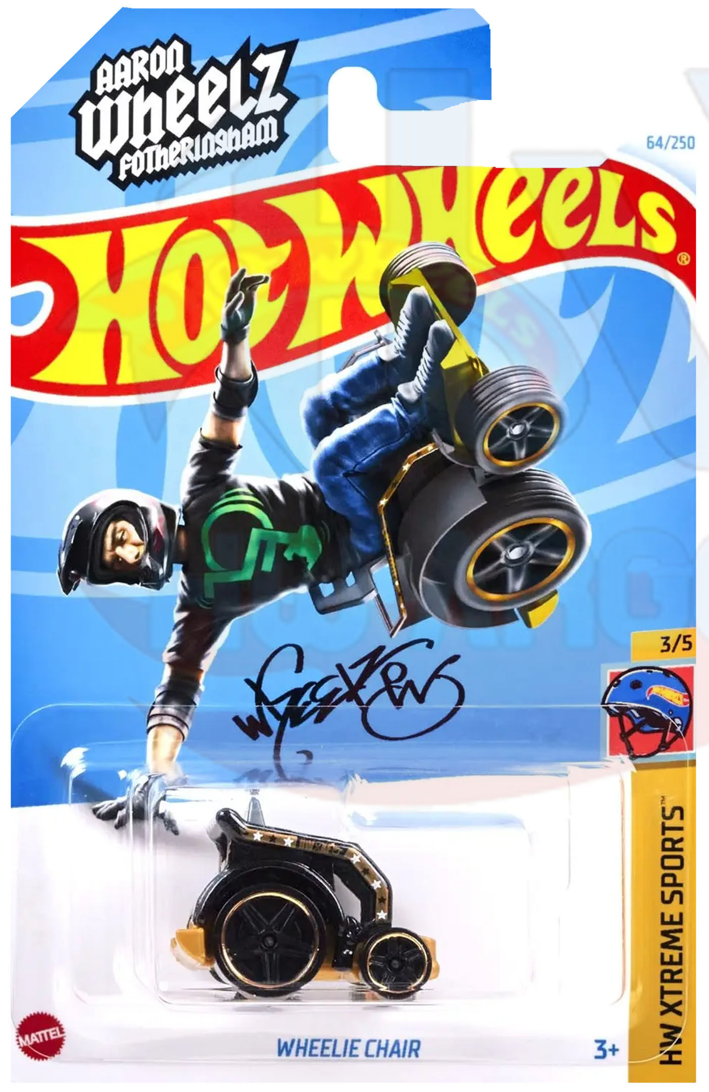 Desafía los límites con una silla de ruedas inspirada en la que usa Aaron «Wheelz» Fotheringham. Conocido por sus acrobacias extremas, «Wheelz» lanzó una silla como esta desde una rampa de 5 pisos de altura para aterrizar con una voltereta frontal que desafía la gravedad.